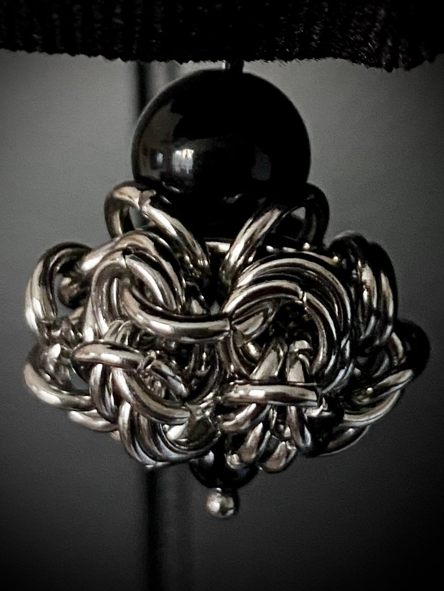 Glamorous UFO pendant! It rotates and feels strong and powerful. Made with Black Tourmaline beads it is highly protective with a lovely weight from the handmade chain.