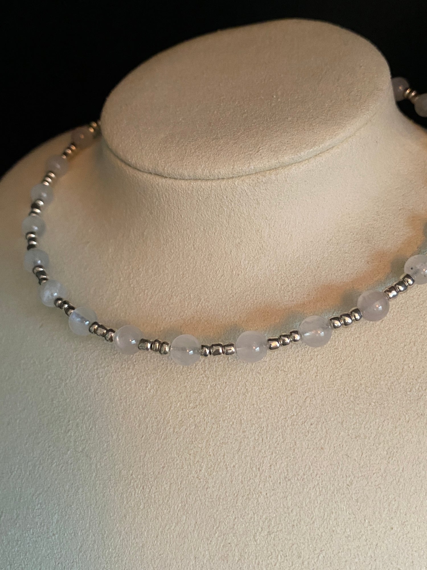 Part of the “Angel” range! A simple yet powerful and elegant piece. Made from stunning Rainbow Moonstone beads giving eye catching flashes that catch the light at different angles. Beautiful!